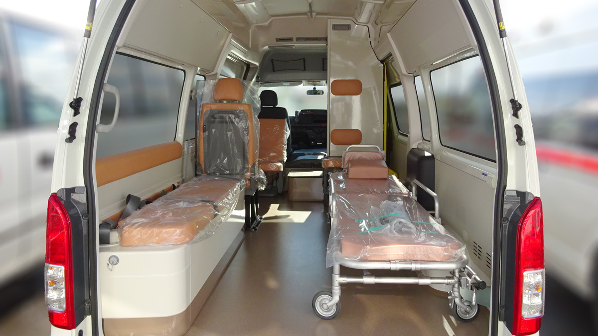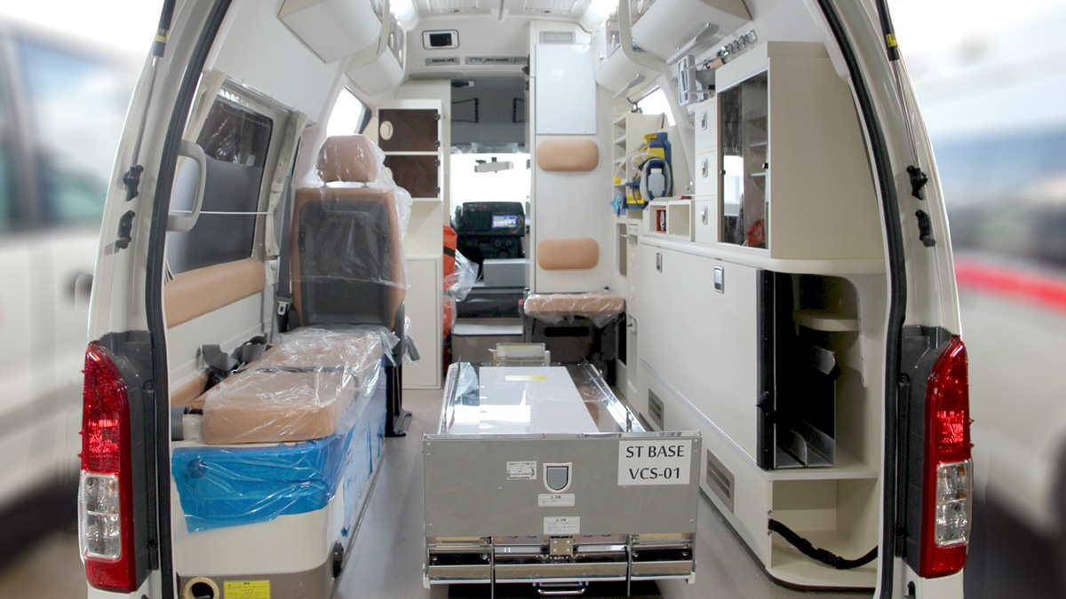 両サイドルーフ収納BOX ・スライダー ・サイド収納BOX ・乗車口側扉BOX ・酸素ボンベ室 ・開閉式処置台