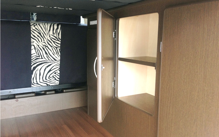 《Active》にはカーゴスペースの他にもアイディアいっぱいの収納設備が揃っています。ギャレーの向かい側に収納棚、後部ルーフ両側も収納棚を設置。